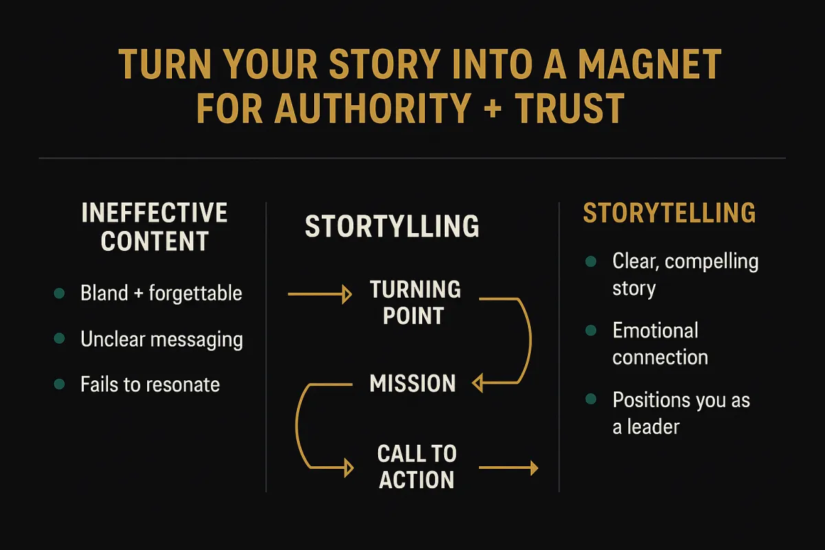 1. Storytelling Framework - Craft a story that builds instant trust and positions you as the only choice. No more rambling just clear, magnetic messaging that makes people lean in.