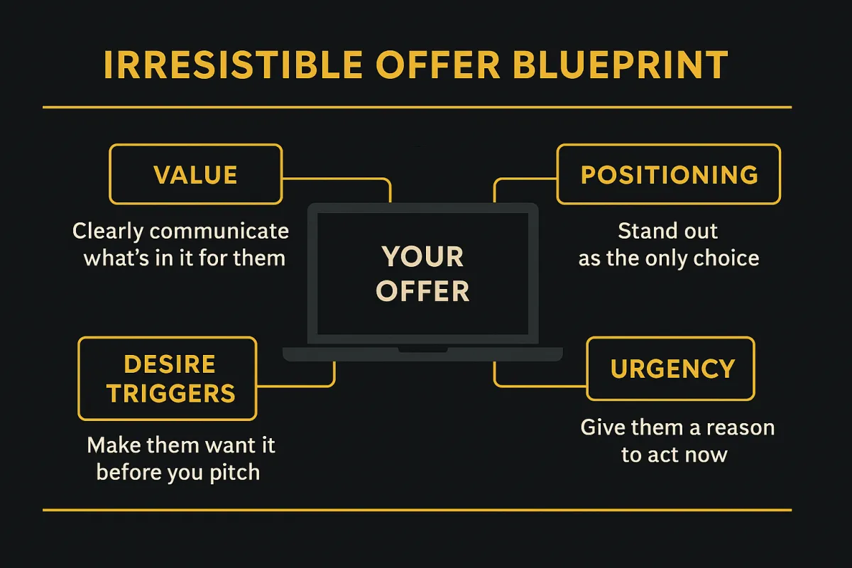 3. Irresistible Offer Blueprint- Design offers people canβt ignore. Package your value with clarity and urgency so your audience says βI want inβ before you even pitch.